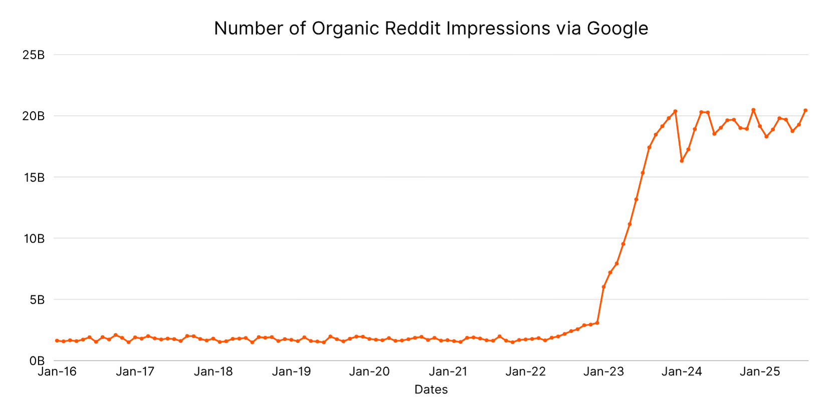 Reddit shows up on the front page of Google in 97.5% of review-related queries initiated by users, thus being a substantial factor in shaping purchase decisions.
